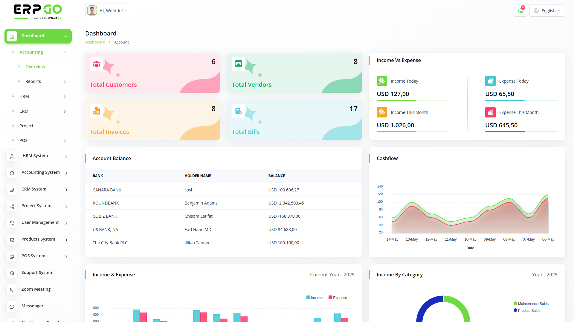 ERPGo SaaS All In One Business ERP With Project, Account, HRM, CRM & POS